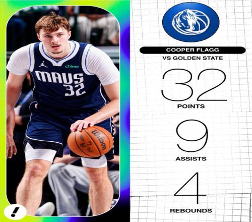 弗拉格在對(duì)陣勇士一戰(zhàn),41分鐘,19中12,三分4中2,罰球6中6,拿到32分9助攻4籃板2搶斷,命中率63.2%,三分命中率50%,罰球命中率100%,真實(shí)命中率73.9%。弗拉格新秀賽季已經(jīng)拿到第八次30+。
