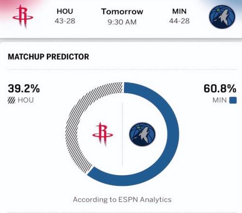 北京時(shí)間3月26日NBA常規(guī)賽,44勝28負(fù)西部第五的森林狼主場迎戰(zhàn)43勝28負(fù)的休斯頓火箭隊(duì)!