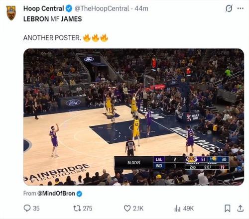 湖人媒體:勒布朗-詹姆斯閉著眼睛就隔扣了胡夫!上半場打完詹姆斯15分6籃板6助攻非常全面。