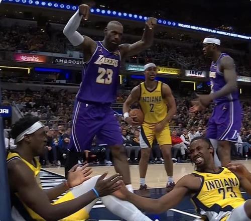 北京時間3月26日,NBA常規(guī)賽,湖人以137-130擊敗步行者。這場比賽41歲高齡的勒布朗-詹姆斯再度打出了一場‘反常識’的現(xiàn)象級表演,隔扣2次胡夫、隔扣內(nèi)姆布哈德,歐洲步晃暈西卡+內(nèi)史密斯,全場球迷都在為41歲的老漢歡呼,全場比賽勒布朗23+9+9。