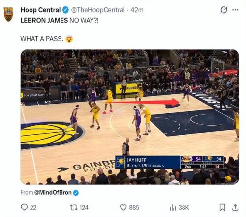除此之外勒布朗還有頂級的視野,他從距離三分線一步的距離還能擊地傳球找到空切的拉拉維亞,歷史級的傳球手真是厲害。