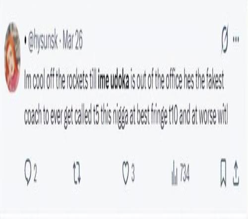 火箭球迷:烏度卡這個(gè)家伙就像個(gè)假教練,他居然自稱是“T5”級(jí)別的教練,最差也是“T10”級(jí)別,他也說(shuō)得出口。