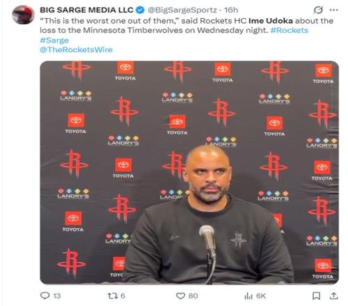 北京時(shí)間3月26日,火箭被森林狼逆轉(zhuǎn)的賽后,烏度卡是這樣評(píng)價(jià)這場(chǎng)比賽:這是他們本賽季表現(xiàn)最差的一場(chǎng)比賽。(烏度卡這個(gè)言論引發(fā)了熱議,因?yàn)樗职炎约旱膯?wèn)題給拋開了)