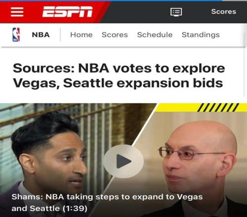 最近的新聞也印證了這一點,據(jù)Shams消息,NBA董事會已經(jīng)投票通過擴軍方向,開放拉斯維加斯和西雅圖兩個城市的球隊競標與申請,單支球隊的競標報價預(yù)計會在70億到100億美元之間。