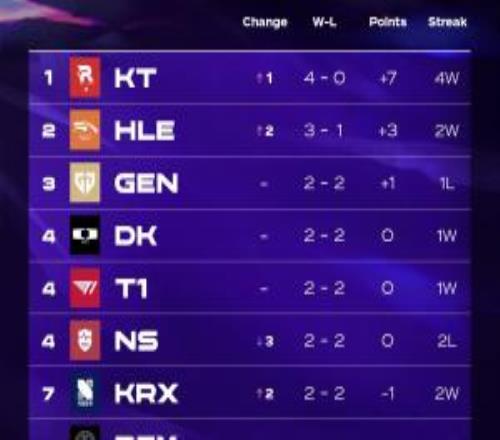 今年真不一樣了!LCK積分排行:KT橫掃BRO四連勝穩(wěn)坐榜首