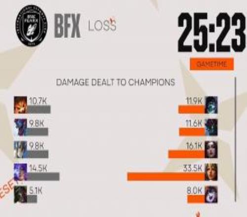 電競(jìng)體育3月17報(bào)道 今日2026先鋒賽組內(nèi)賽BLG與BFX戰(zhàn)至第五局,而在第四局比賽中BLG下路VIper最終在本局游戲內(nèi)一人獨(dú)攬33.5K的恐怖傷害,這要比BFX上中野三人加起來(lái)還高。