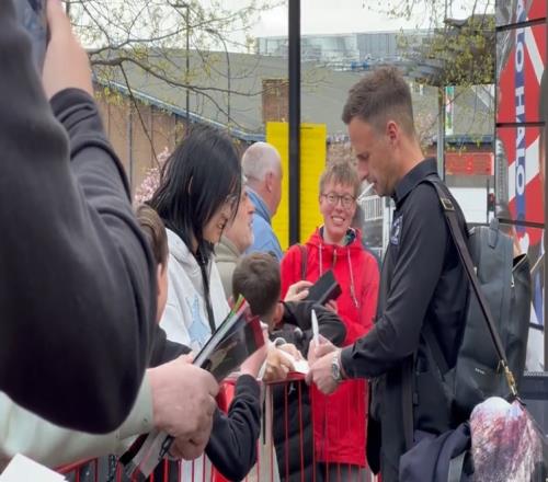 據(jù)《解鎖之旅》欄目的現(xiàn)場實拍,賽后吉爾伯特松弛感滿滿,邊抽煙邊為球迷簽名。