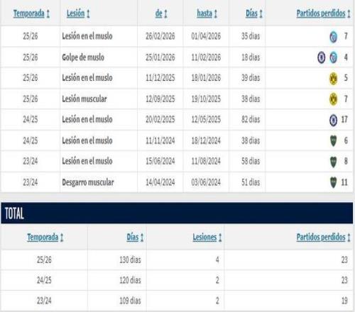在本場對陣美因茨的比賽前,本賽季安塞爾米諾因肌肉傷病問題共缺席23場比賽。