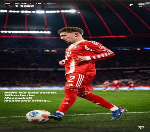 體育播報4月10日宣 拜仁官方宣布卡爾右大腿后側(cè)肌肉纖維撕裂,預(yù)計缺陣三周時間。