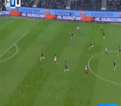 第36分鐘,巴庫頭球擺渡,羅慕洛腳后跟破門,萊比錫1-1