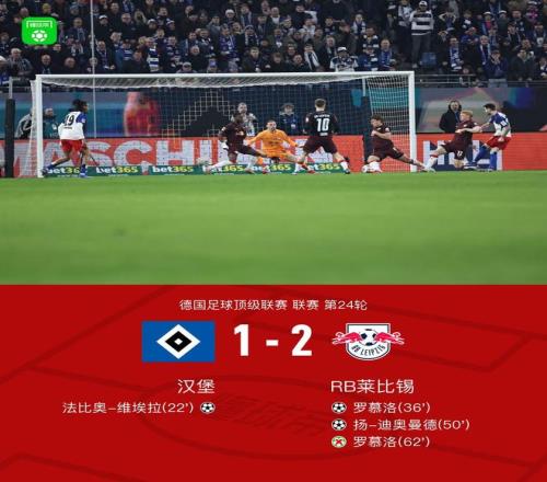 北京時間3月2日德國足球頂級聯(lián)賽 聯(lián)賽 第24輪,漢堡主場對陣RB萊比錫。漢堡法比奧-維埃拉破門。RB萊比錫羅慕洛破門,揚-迪奧曼德破門。最終比分漢堡 1-2 RB萊比錫。