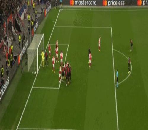 第7分鐘,勒沃庫森球員科法內(nèi)禁區(qū)弧頂遠(yuǎn)射被阿森納門將拉亞沒收。