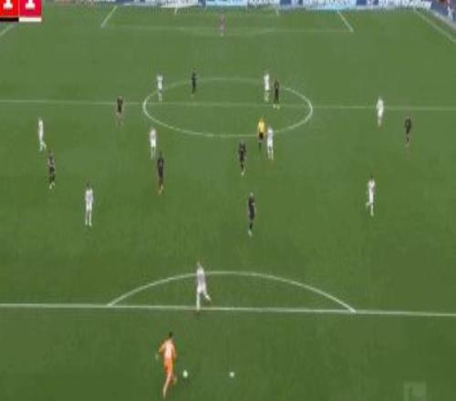 開場僅6分鐘,路易斯-迪亞斯左路帶球被斷,卡爾布雷恩策動反擊,??饲皥龇智颍⑷R士-加西亞禁區(qū)內(nèi)抽射,擊中約納坦-塔折射入網(wǎng),烏爾賴希無能為力,勒沃庫森取得夢幻開局,1-0!