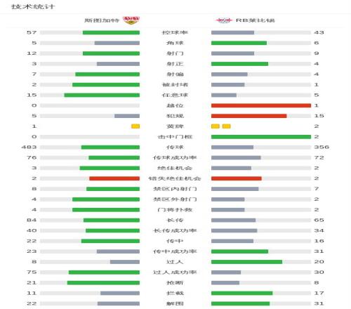 北京時間3月16日德國足球頂級聯(lián)賽第26輪,斯圖加特主場對陣RB萊比錫。下半場昂達夫打入制勝球。最終比分斯圖加特 1-0 RB萊比錫。