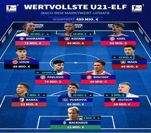 德轉(zhuǎn)更新德甲最貴U21陣容: