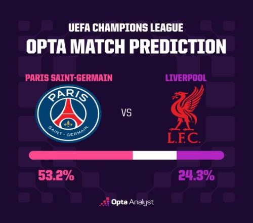 反觀大巴黎這邊,國內聯(lián)賽的爭冠壓力幾乎是沒有的,為保障歐冠能全力出擊,法甲還給他們“開了后門”,提前把本周末法甲“榜首大戰(zhàn)”給挪到了其他時間。換言之,眼前這一周時間里,巴黎圣日耳曼需要考慮的問題就只有“如何跨過利物浦殺進歐冠四強”。在這種不對等的備戰(zhàn)狀態(tài)下,大巴黎真把利物浦給打花了也有可能,尤其是對手這次也缺了受傷的阿利松。不過從超算的模擬推演來看,雙方的差距倒也不是特別離譜,大巴黎獲勝概率高達53.2%,但利物浦也有24.3%。