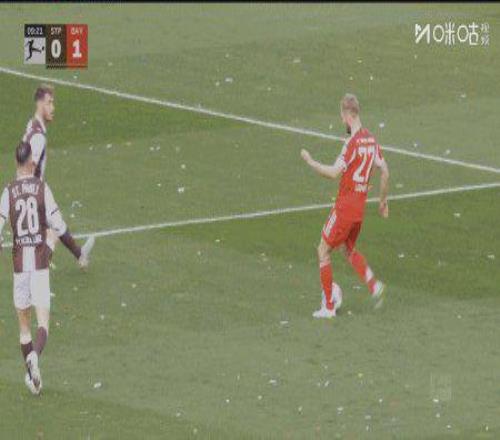 第53分鐘,基米希右路開出間接任意球,圣保利后衛(wèi)解圍不力反而蹭到后點(diǎn),戈雷茨卡臨空抽射破網(wǎng)。2比0。