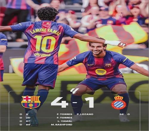 北京時間4月12日凌晨,諾坎普的聚光燈毫無懸念地打在亞馬爾身上。面對西班牙人,這位拉瑪西亞出品的瑰寶用一記進球、兩次助攻,獨造三球,將加泰羅尼亞德比變成個人表演的舞臺。費蘭·托雷斯借勢梅開二度終結(jié)球荒,巴薩4-1輕取同城死敵,豪取聯(lián)賽7連勝。