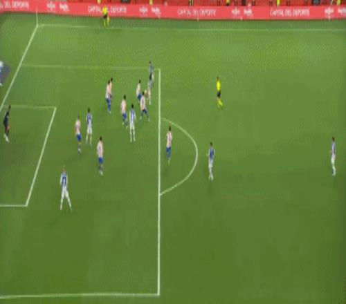 第1分鐘,開門紅!巴雷內(nèi)切亞接隊(duì)友傳中頭槌破門,馬競(jìng)0-1皇家社會(huì)