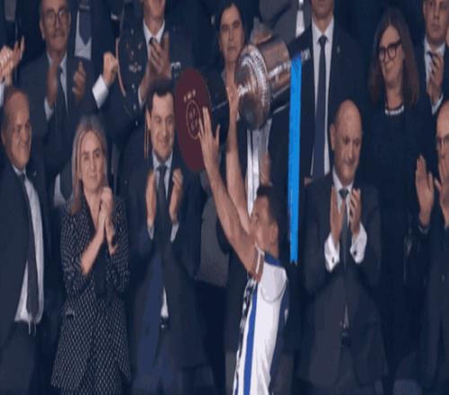 奧亞薩瓦爾作為皇家社會(huì)隊(duì)長(zhǎng),領(lǐng)取國(guó)王杯冠軍獎(jiǎng)杯