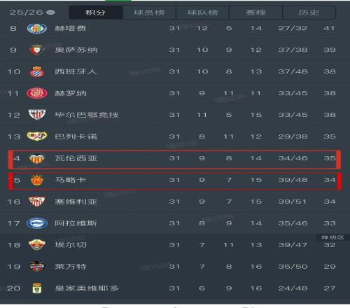 馬洛卡名副其實(shí)的“主場(chǎng)龍”,目前球隊(duì)聯(lián)賽排名第15,積34分,僅與今天的對(duì)手瓦倫西亞相差一分。而兩隊(duì)僅與降級(jí)區(qū)相差一個(gè)勝場(chǎng),這場(chǎng)比賽是實(shí)打?qū)嵉摹氨<?jí)6分戰(zhàn)”。