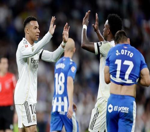 此役主場對陣阿拉維斯,姆巴佩在上半場第31分鐘禁區(qū)外遠射破門,幫助皇家馬德里取得1-0領先。