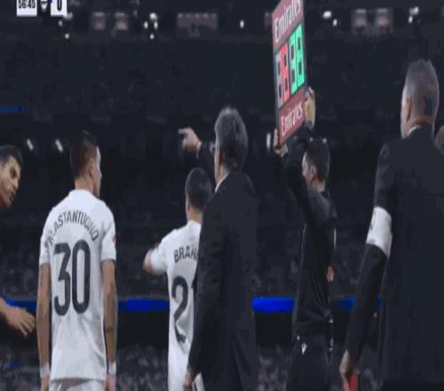 第57分鐘,皇馬換人,馬斯坦托諾和卜拉欣-迪亞斯替補登場