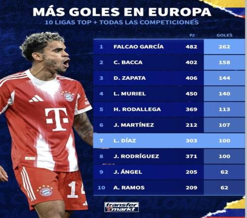 最近轉(zhuǎn)會市場網(wǎng)整理了“哥倫比亞球員在歐洲進球最多”榜單,統(tǒng)計口徑是10大頂級聯(lián)賽+各項賽事。榜單里法爾考、巴卡、薩帕塔這些老牌射手把累計進球堆到很高,前幾名的差距一眼能看出來。另一邊,迪亞斯和羅德里格斯都到了100球,但位置卻卡在中段,和頭部的262球形成強烈反差。現(xiàn)役的迪亞斯還能把自己的排名往上擠到什么位置?(數(shù)據(jù)截至北京時間2026年2月14日)