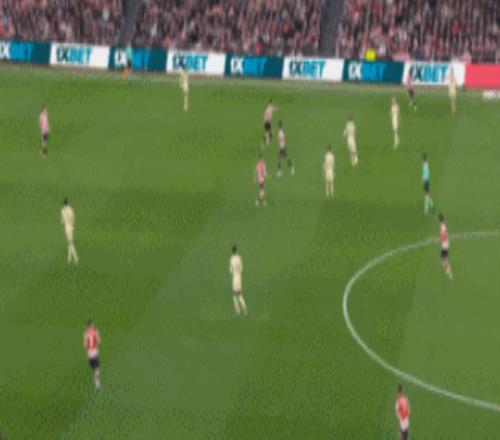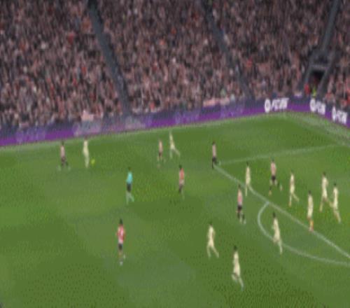 這一次其實(shí)挺典型的,當(dāng)亞馬爾側(cè)翼持球,費(fèi)蘭托雷斯原本在中路,不過(guò)他很聰明地繞到了后點(diǎn),結(jié)果亞馬爾球過(guò)來(lái)之后,費(fèi)蘭托雷斯左腳橫傳門(mén)前,險(xiǎn)些造成烏龍球。