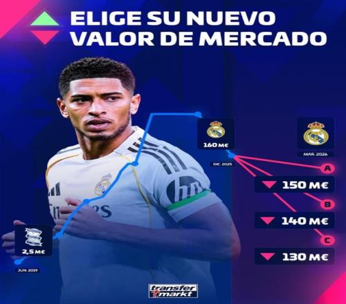 德轉(zhuǎn)即將對西甲球員的身價進行更新。德轉(zhuǎn)預熱貝林厄姆身價下跌,最高1.5億歐,最低1.3億歐。