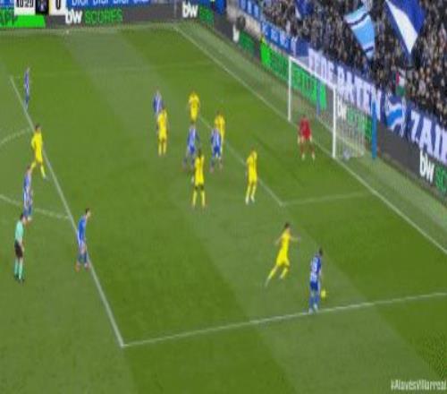 第40分鐘,拉法-馬林頭球解圍變?yōu)觚垼⒗S斯1-0比利亞雷亞爾
