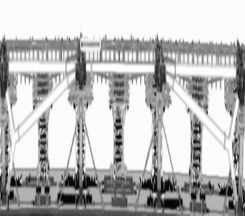 一些由相同材料制成的加固結(jié)構(gòu)將連接各個立柱,并形成三角形結(jié)構(gòu)。從每根立柱延伸出一種名為“徑向梁”的金屬構(gòu)件,形狀類似車輪輻條,從外圍延伸至球場中心。當(dāng)這些梁和對應(yīng)的徑向結(jié)構(gòu)完成搭建后,施工人員將開始安裝并拉緊鋼纜,通過張力系統(tǒng)支撐整個頂棚的重量。以下是利馬克關(guān)于頂棚立柱結(jié)構(gòu)的設(shè)計圖。