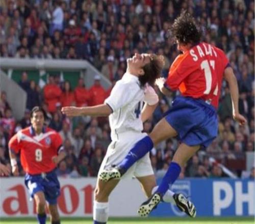 俱樂部混得風(fēng)生水起,國家隊(duì)薩拉斯更是重拳出擊。在1998年法國世界杯預(yù)選賽期間,薩拉斯和另一位智利傳奇前鋒薩莫拉諾組成了令整個(gè)南美足壇聞風(fēng)喪膽的“雙薩組合”。