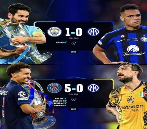 上賽季歐冠決賽,國米在昔日主帥小因扎吉提前跑路的情況下,被大巴黎5球血洗。按照這一歷史規(guī)律來看,本賽季藍黑軍團意甲奪冠板上釘釘。