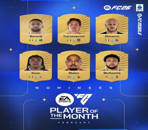 北京時間2月26日,意甲官方公布了2月聯(lián)賽最佳球員的6位候選者,國際米蘭的左后衛(wèi)迪馬爾科、羅馬前鋒馬倫以及尤文圖斯中場麥肯尼在列。