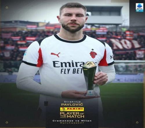在本輪意甲,米蘭2-0擊敗克雷莫內(nèi)塞。本場比賽米蘭后衛(wèi)帕夫洛維奇在最后時刻打進關(guān)鍵進球,賽后他也當(dāng)選意甲官方評選出的本場比賽最佳球員。