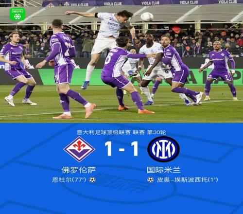 北京時(shí)間3月23日3:45,意甲第30輪繼續(xù)進(jìn)行,國際米蘭做客弗蘭基球場挑戰(zhàn)佛羅倫薩,本場主裁判為安德烈亞-科隆博。上半場,皮奧頭槌閃擊,莫伊塞-基恩錯(cuò)失良機(jī)。下半場,恩杜爾補(bǔ)射救主。最終,國米1-1佛羅倫薩,遭遇聯(lián)賽三輪不勝。