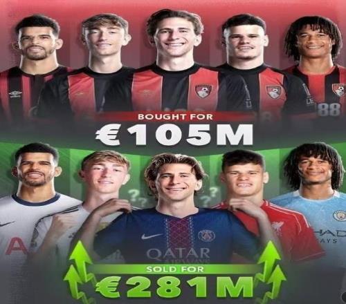這6筆球員交易,伯恩茅斯就狂賺近2.4億歐元。伯恩茅斯的成功并非偶然,而是俱樂部在多個層面上精明運(yùn)作的結(jié)果。首先是獨(dú)到的球探眼光,他們的球探系統(tǒng)專注于在全球范圍內(nèi)發(fā)掘“半成品”。無論是以1963萬歐元簽下赫伊森,還是用1025萬歐元購入塞門約,這些投資最終都獲得了超過400% 的回報率,證明了其引援眼光之“毒辣”。