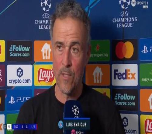 歐冠1/4決賽首回合,巴黎主場(chǎng)2-0戰(zhàn)勝利物浦,巴黎主帥恩里克賽后接受了TNT體育的采訪。