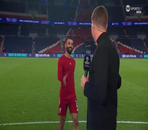 本場比賽,利物浦前鋒薩拉赫沒有出場,在替補(bǔ)席枯坐90分鐘后,薩拉赫在TNT體育的直播中微笑著與杰拉德、史蒂夫-麥克馬納曼和勞拉-伍茲握了手。