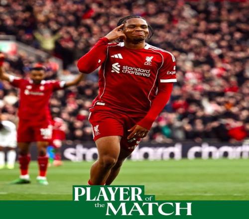 英超第32輪,利物浦主場2-0擊敗富勒姆,此役打入精彩進球的17歲小將恩古莫哈當選利物浦隊內全場最佳球員。