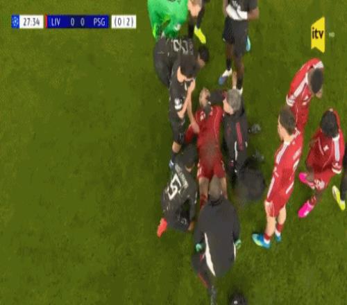 本場比賽,利物浦祭出了?;倏撕鸵了_克的“雙中鋒”的組合試圖翻盤。然而僅踢了28分鐘,?;倏吮阃蝗粺o對抗情況下,受傷倒地無法堅持。