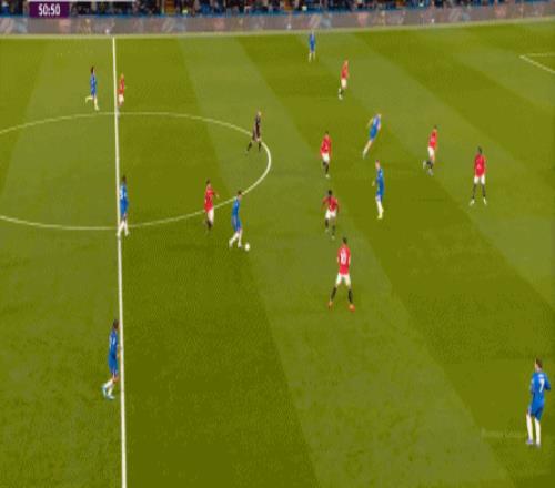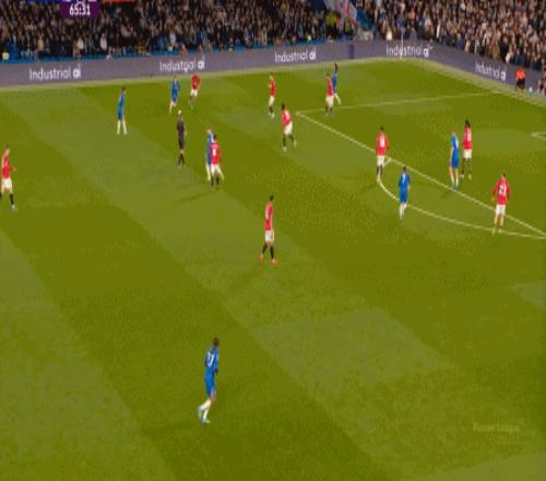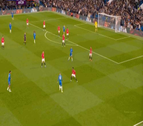 所以在中場休息的時候,羅塞尼爾應該是和隊員強調了這一側的機會,于是在下半場回來之后,切爾西能夠繼續(xù)切掉曼聯(lián)的中場,從而開發(fā)出遠射的空間:
