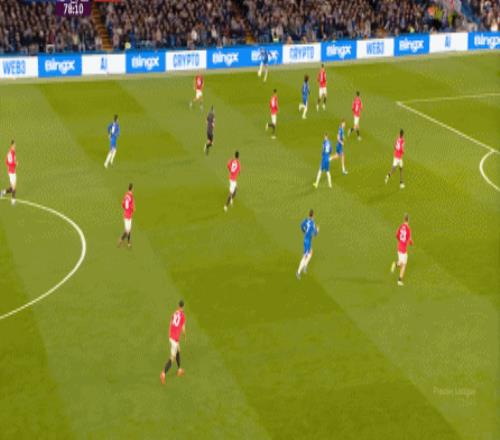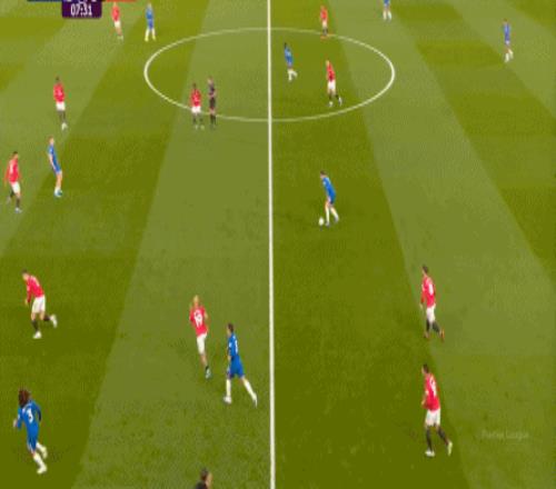 所以在曼聯(lián)并不回避高位作業(yè)的情況下,切爾西在主場的開局打得其實還不錯,他們既可以通過反擊快速推進到前場: