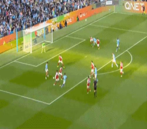 在堪稱冠軍爭奪的“決賽”里,切爾基為曼城取得領(lǐng)先。然而,僅僅108秒之后,多納魯馬解圍時失誤,被哈弗茨擋入球門,阿森納迅速扳平比分。