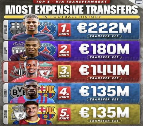 足壇歷史最貴五大轉(zhuǎn)會(huì)清算!巴薩兩筆過(guò)億交易徹底失敗