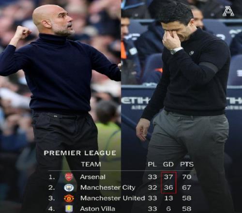 曼城21阿森納,補賽贏球就可登頂,英超爭冠徹底反轉(zhuǎn)誰最關(guān)鍵