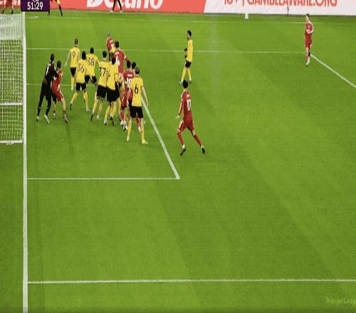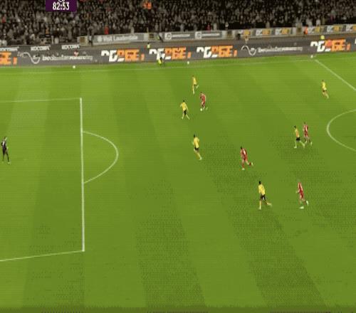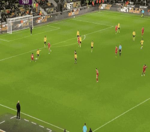 第78分鐘,狼隊打出快速反擊,在和范戴克的對抗中,阿洛克達爾有一個推人動作,羅德里戈·戈麥斯冷靜破門,狼隊主場取得領先。