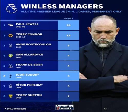 6. 圖多爾(托特納姆熱刺) 2026年 3場