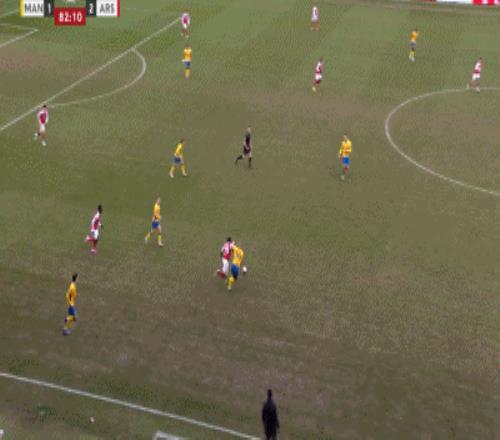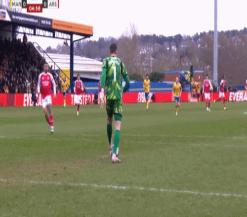第5分鐘,曼斯菲爾德門(mén)將出球失誤,但阿森納小將道曼錯(cuò)失大禮包。